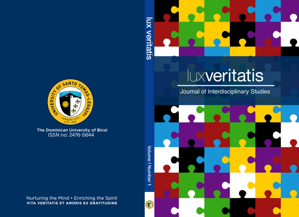 LUX VERITATIS (Translated in English as, ‘In the Light of Truth’) is an online refereed international journal of interdisciplinary studies sponsored, hosted, administered, and maintained by University of Santo Tomas-Legazpi, Philippines and is published twice every academic year. The Journal promotes interdisciplinary, multidisciplinary, integrative, and pluralist perspectives, issues, and trends along pedagogy, research, and community service among the academic disciplines such as but not limited to the Humanities, Social Sciences, Natural Sciences, and Education. It aims to produce new knowledge in the Humanities, Social Sciences, Natural Sciences, and Education, provide space for researchers and scholars in order to share their research findings and results, social analysis, and praxis, serve as locus and network of research institutions in the Philippines and abroad, establish, develop, promote, and sustain academic culture in the region, and gain academic reputation and research credibility for future engagements, linkages, and research resource sharing and networking. The Journal is part of the constant effort of University of Santo Tomas-Legazpi to contribute in the continuous search for and realize the Truth in the context of contemporary world.